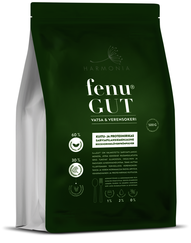 fenuGUT® on proteiinirikas ja vähärasvainen sarviapilansiemenistä valmistettu kuitujauhe, joka edistää ruoansulatusta sekä tukee glukoosin, insuliinin ja rasvojen aineenvaihduntaa, mikä auttaa ylläpitämään terveellistä verensokeritasoa ja veren normaaleja rasva-arvoja.