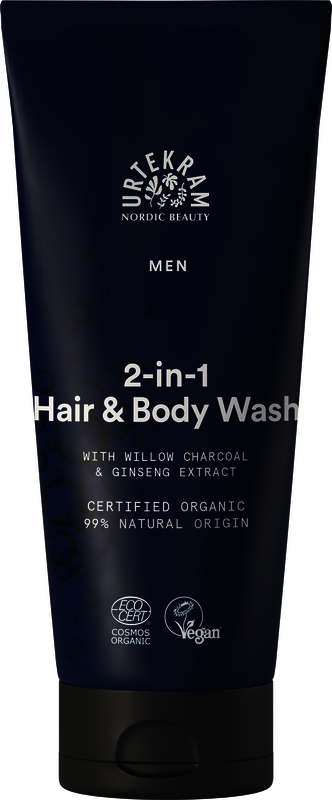 2-in-1 Hair & Body Wash ginseng-uutteella ja luomupajuhiilellä on 2-in-1-tuote iholle ja hiuksille, jolla on raikas, maskuliininen tuoksu. Auttaa ihoa ja hiuksia tuntumaan erityisen puhtailta ja raikkailta. Ginseng-uute ja luomupajuhiili auttavat puhdistamaan ihon ja hiukset puhtaiksi, kosteutetuiksi ja pehmeiksi. Tällä 2-in-1-koostumuksella on musta sävy, koska se sisältää puhdistavaa orgaanista pajuhiiltä. Tuote ei tahraa ihoa ja hiuksia. Kaksi vaikutusta yhdessä, aloita päivä tehokkaasti tällä virkistävällä tuotteella. Kaikille iho- ja hiustyypeille.